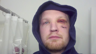 R U gonna be fine? Sorry to see this. Wow. Sobering. RT @KCRoyalman: 18 stitches and some broken bones in my face...